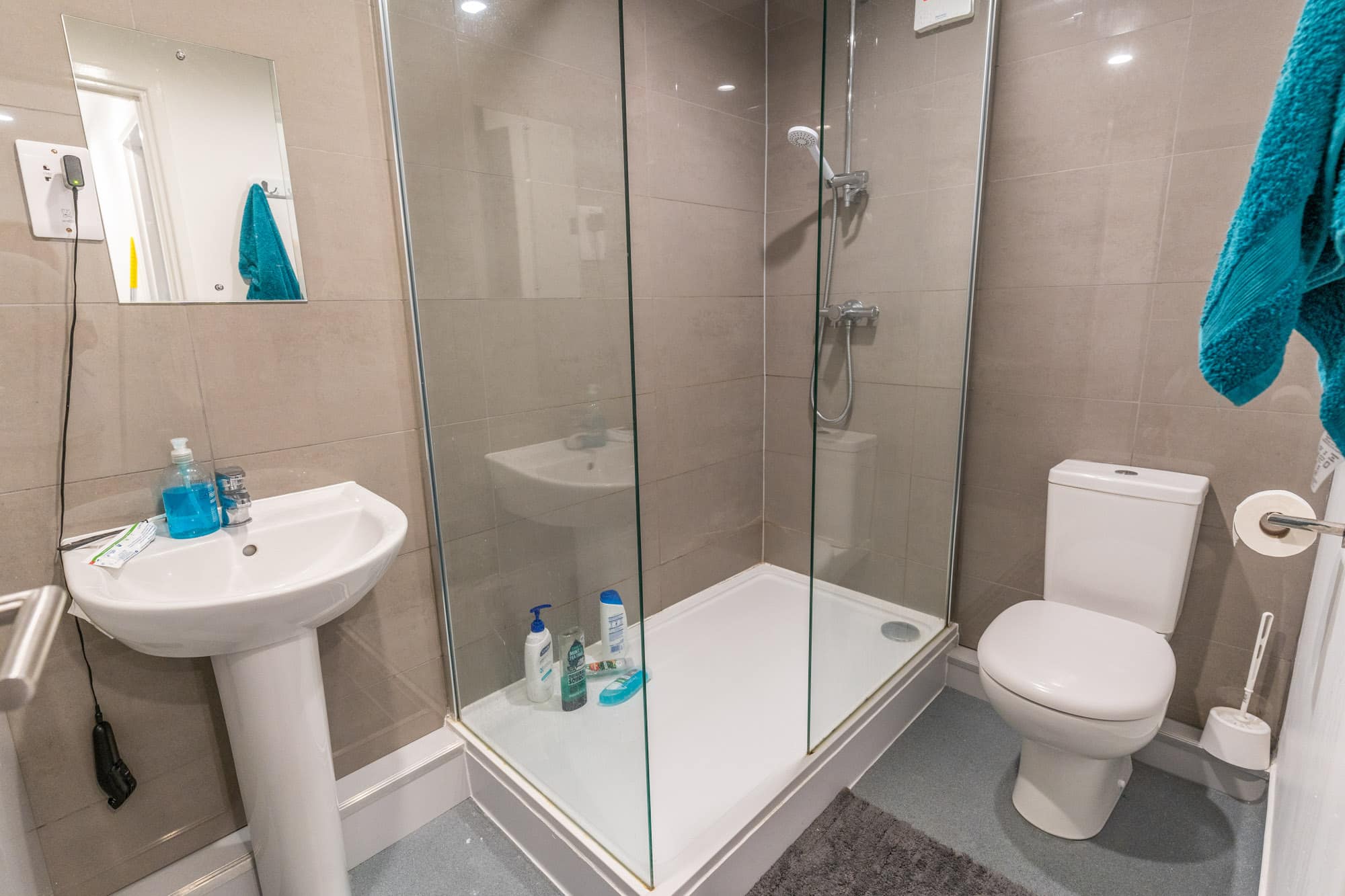 All of our Standard Bedroom (Renovated) accommodation rooms share 2 bathrooms and a communal kitchen with 5-7 students with large variations of these rooms also available.  A housekeeper will clean all communal areas of your flats once a week, including the bathroom and kitchen.